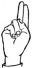 На ћирилици написано ИСИДОРА БЕКОЊА састоји се из 13 слова [?]. Исписано ћириличном једноручном азбуком за глувонеме: